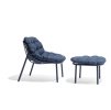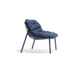 The seating shell made of stainless steel tube is not only used to carry the very comfortable cushion but also refers to the graphic look of the whole collection and typical style of all pieces that this premium furniture manufacturer offers.