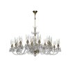 A large crystal chandelier with eighteen bulbs in two levels is an example of the perfect work of Czech glassmakers. Bowls and center vases are decorated with cut geometric patterns; light bulbs are placed in transparent glass vases. Carefully cut rectangular trimmings, so-called prisms, are fixed at the bowls. The elegant chandelier stands out in representative rooms with higher ceilings.