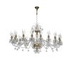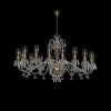 This large, luxurious chandelier with sixteen light bulbs, placed in beautifully formed and gold-decorated vases, so-called tulips, has an unusual oval shape. The chandelier will impress you with its perfect design, every detail is precisely crafted. Cut rectangular trimmings - prisms - refract both artificial light and daylight into beautiful rainbow colors. The arms of the chandelier and the upper "crown" are decorated with beautiful cut crystal bells. The luminaire is suitable for spacious, representative rooms, to which it will bring the unrepeatable luxury of Czech crystal.
