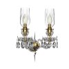 A beautiful crystal wall lamp with two bulbs is an example of the perfect work of Czech glassmakers. The bowls are decorated with cut geometric decors; bulbs are placed in transparent glass vases. The lamp is decorated with carefully polished rectangular trimmings, so-called prisms. The lamp beautifully complements the chandeliers in the same design.