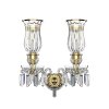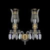 A beautiful crystal wall lamp with two bulbs is an example of the perfect work of Czech glassmakers. The bowls are decorated with cut geometric decors; bulbs are placed in large, beautifully shaped vases with gilded pattern and border. The lamp is decorated with carefully polished rectangular trimmings, so-called prisms. The lamp beautifully complements the chandeliers in the same design.