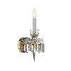 The beautiful crystal wall lamp is an example of the perfect work of Czech glassmakers. The bowls are decorated with cut geometric patterns; the light bulb is placed in a beautiful vase through which the metal parts shine through. The lamp is decorated with carefully polished rectangular trimmings, so-called prisms. The lamp beautifully complements the chandeliers in the same design.