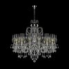 A large, luxurious crystal chandelier can become a jewel and a wonderful dominant of large representative interiors. The combination of sparkling crystal and shiny metal will bring into your interior a unique luxury. Sixteen bulbs with metal capsules (tubes covering the sockets) are fixed in perfectly shaped crystal vases. Perfectly cut almond-shaped trimmings enhance the luster and sparkle of the chandelier. We offer gold and silver versions.