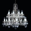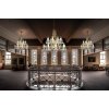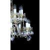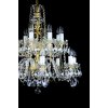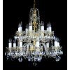 Classic large crystal chandelier with sixteen arms in two levels has a very harmonious and luxurious appearance. This richly decorated chandelier with almost triangular silhouette may become a beautiful supplement to the classic, historicist, but also modern interior. Its dimensions are suitable for larger rooms with high ceilings and representative public spaces. Ceiling lamp is decorated with crystal bowls, crystal trimmings in the shape of almonds and chains of octagons. Chandelier can be ordered in gold or silver version. As a complement, we also offer wall lights in the same design.