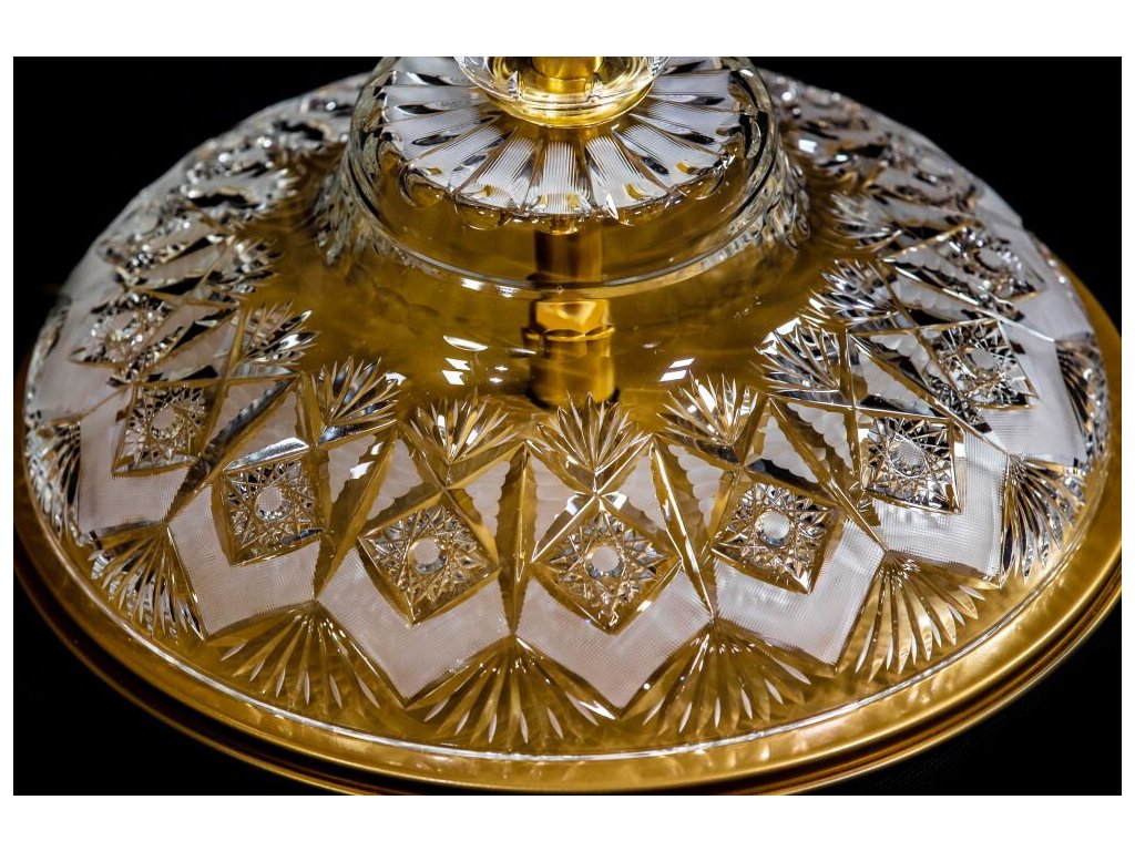 Maria Antonia type lamps belong to the most luxurious lamps in our offer. The special limited edition BRUS stands out with finely hand-cut bowls and vases, which will make the lamp a real masterpiece of art and a jewel of your interior. These lamps have typical flat steel arms, covered on both sides with glass strips, which are fixed using glass flowers, so-called rosettes. The lamp is decorated with carefully cut crystal trimmings that give it a high gloss. The floor lamp with ten bulbs is suitable for spacious, representative interiors, to which it will bring a luxurious atmosphere. You can order it in a gold or silver version; it will beautifully complement the chandeliers in the same design.
