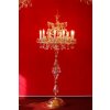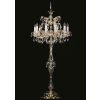 Floor lamp Maria Theresa beautifully complements chandeliers in the same design. Crystal glass bowls and metal arms, covered with glass strips, are decorated with trimmings almonds and glass rosettes that are typical for this group of chandeliers. Crystal trimmings, thanks to their precise cut, refract light into all colors of the rainbow. Stand of the lamp is made of crystal glass parts. The lamp can be ordered in gold or silver color.