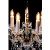 Maria Antonia type lamps belong to the most luxurious lamps in our offer. The special limited edition BRUS stands out with finely hand-cut bowls and vases, which will make the lamp a real masterpiece of art and a jewel of your interior. These lamps have typical flat steel arms, covered on both sides with glass strips, which are fixed using glass flowers, so-called rosettes. The lamp is decorated with carefully cut crystal trimmings that give it a high gloss. The table lamp with five bulbs is suitable for representative interiors, to which it will bring a luxurious atmosphere. You can order it in a gold or silver version; it will beautifully complement the chandeliers in the same design.