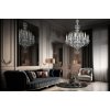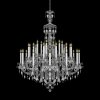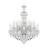 This large crystal chandelier is made of genuine Czech crystal. Thirty arms are attached to one base, but due to their different shape, the bulbs are placed on three levels. The almond-shaped trimmings, fixed on chains of small octagons, complete the beautiful silhouette of the chandelier. Typical for this type of chandelier are also the long "candles" under the light bulbs. The lamp stands out in spacious representative rooms with high ceilings.