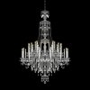 This large, nearly two meter high crystal chandelier is made of genuine Czech crystal. 35 arms are attached to one base, but due to their different shape, the bulbs are placed on three levels. The almond-shaped trimmings, fixed on chains of small octagons, complete the beautiful silhouette of the chandelier. Typical for this type of chandelier are also the long "candles" under the light bulbs. The lamp stands out in spacious representative rooms with high ceilings.