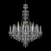 This large, nearly two meter high crystal chandelier is made of genuine Czech crystal. 40 arms are attached to one base, but due to their different shape, the bulbs are placed on three levels. The almond-shaped trimmings, fixed on chains of small octagons, complete the beautiful silhouette of the chandelier. Typical for this type of chandelier are also the long "candles" under the light bulbs. The lamp stands out in spacious representative rooms with high ceilings.
